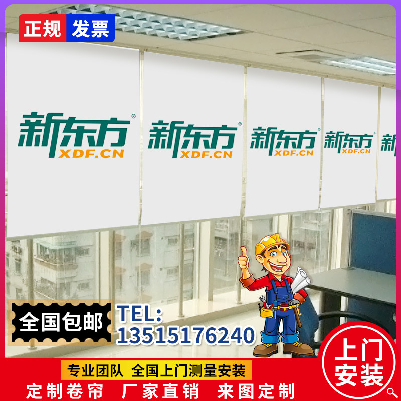 卷帘窗帘定制办公室公司广告logo电动升降手拉式免打孔遮光遮阳帘热门设计联盟服务商