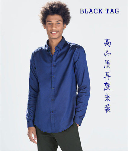 上班时尚男士职业装纯棉长袖衬衫深蓝色商务休闲修身尖领绅士衬衣热门设计联盟服务商