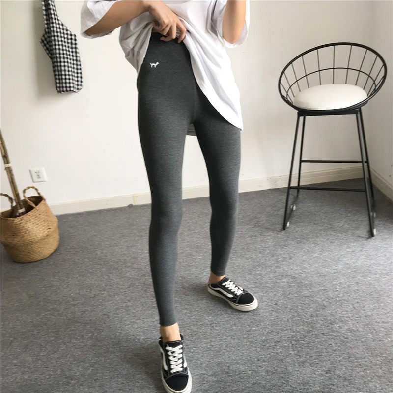韩版东大门秋上新ins款细螺纹小狗刺绣修身力打底裤九分女裤热门设计联盟服务商