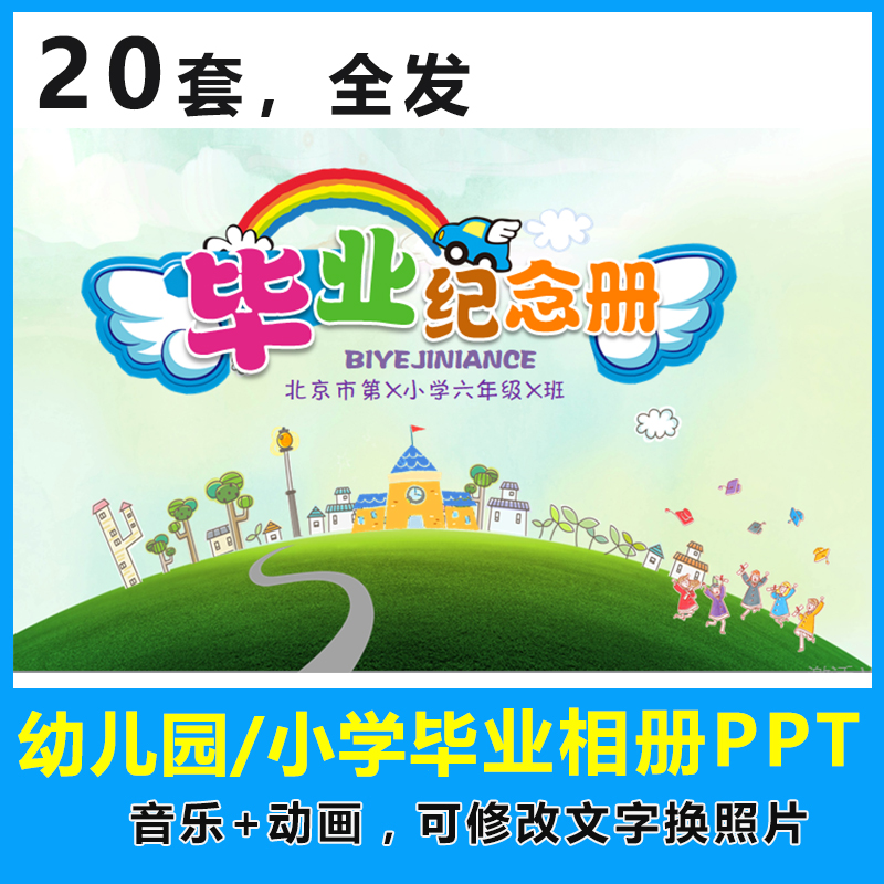 幼儿园毕业电子相册PPT模板 小学纪念册典礼回顾动态卡通可爱热门设计联盟服务商