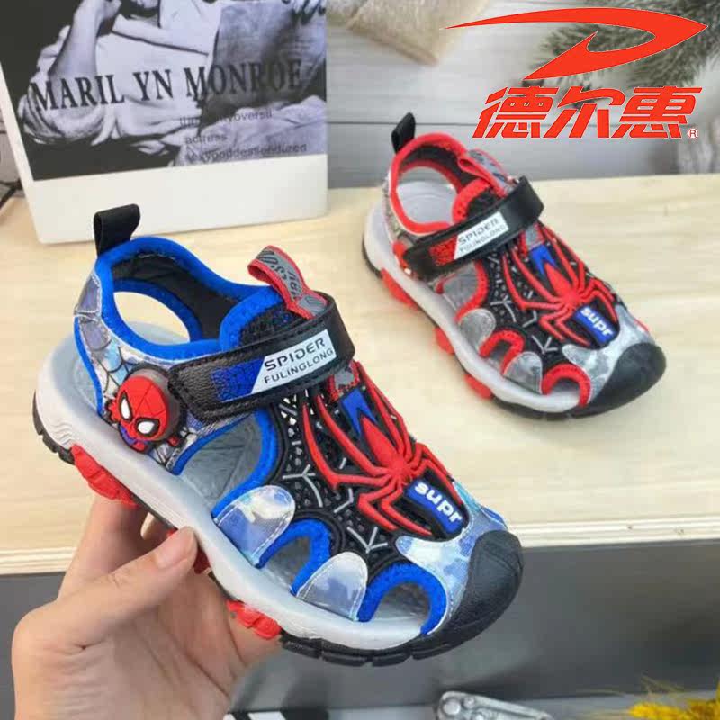 德尔惠儿童凉鞋男童夏季小童包头软底防滑男孩蜘蛛侠网红款沙滩热门设计联盟服务商