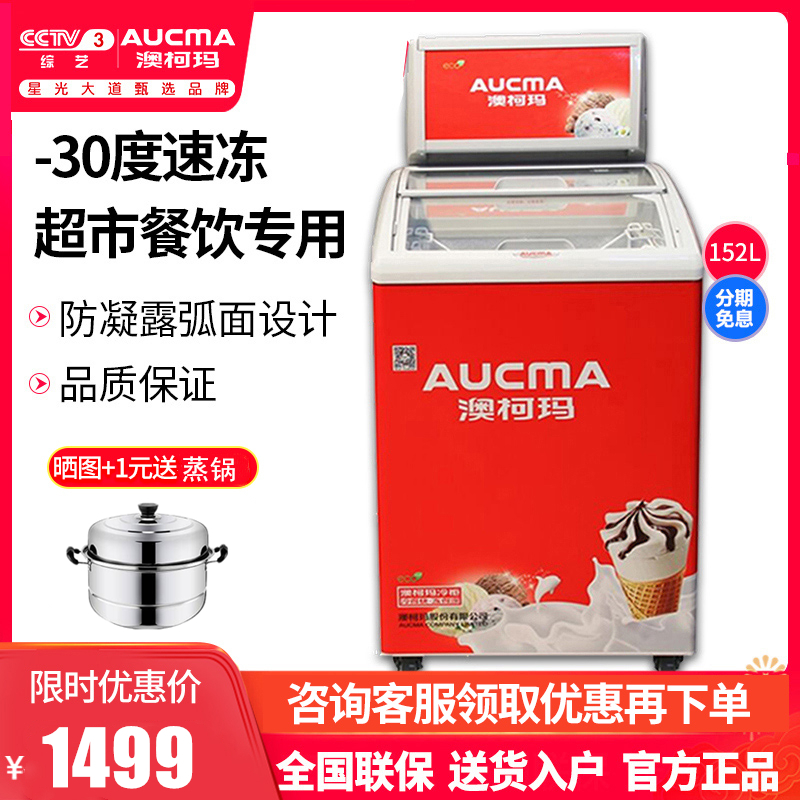 澳柯玛雪糕展示柜商用超市透明门雪柜小型家用立式除霜小冰柜冷冻热门设计联盟服务商