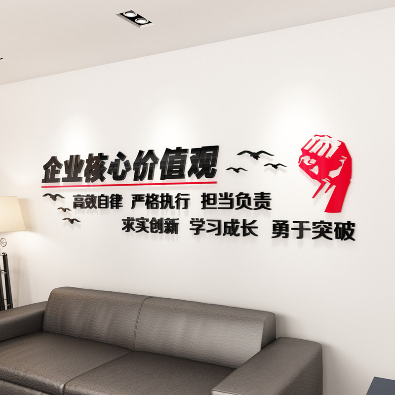 企业核心价值观办公室标语公司励志背景墙壁装饰亚克力3d立体墙。热门设计联盟服务商