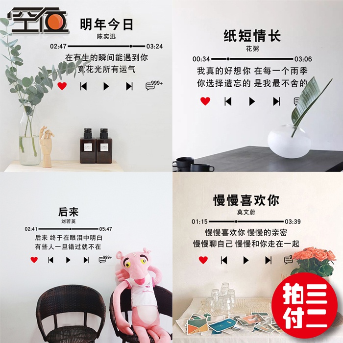 网红出租屋改造房间北欧ins歌词墙贴纸少女心墙面奶茶店装饰墙贴热门设计联盟服务商