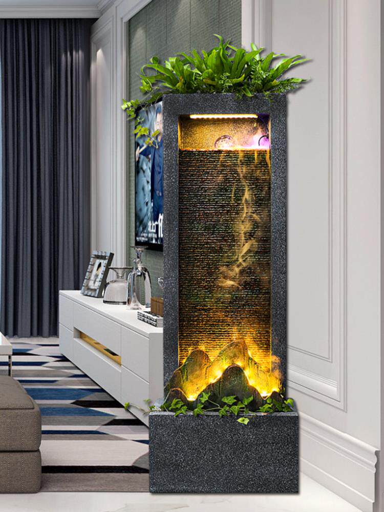 件水幕饰品客厅旁边摆落地柜景观喷泉墙室内电视家居生财装饰流水热门设计联盟服务商