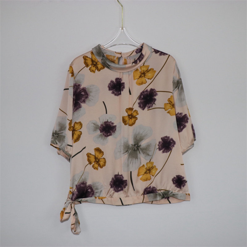莱叶服饰821A16 立领夏季新款仿真丝遮肉显瘦气质百搭T恤衫大码女热门设计联盟服务商