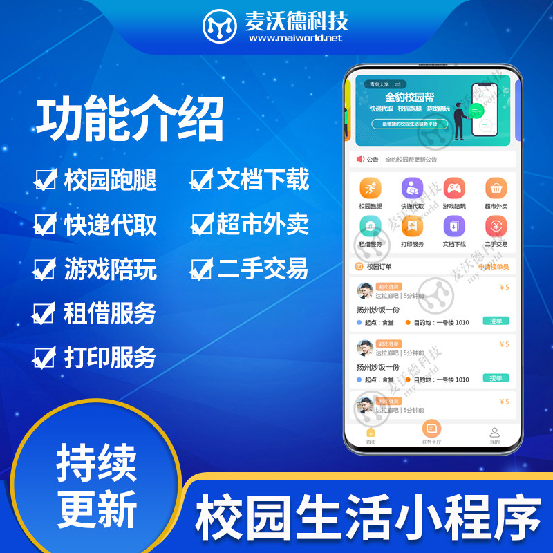 校园生活服务小程序代取快递小程序校园外卖小程序互帮互助小程序热门设计联盟服务商