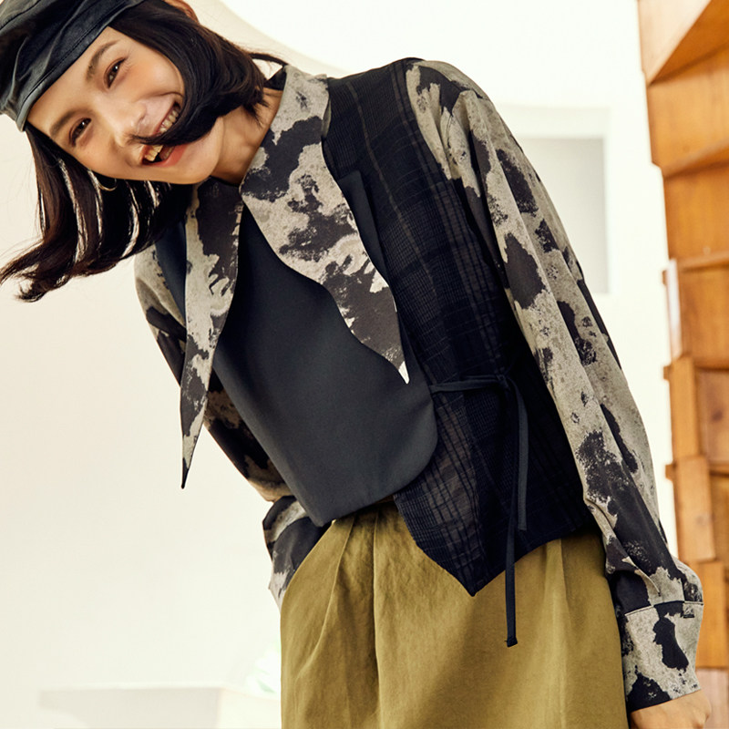 【VIMIE】不对称设计款马夹新款拼接系带无袖时尚短款马甲上衣女热门设计联盟服务商