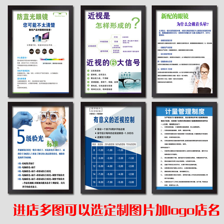 眼镜店海报配镜验光流程图眼科知识预防近视宣传画眼科医院有框画热门设计联盟服务商