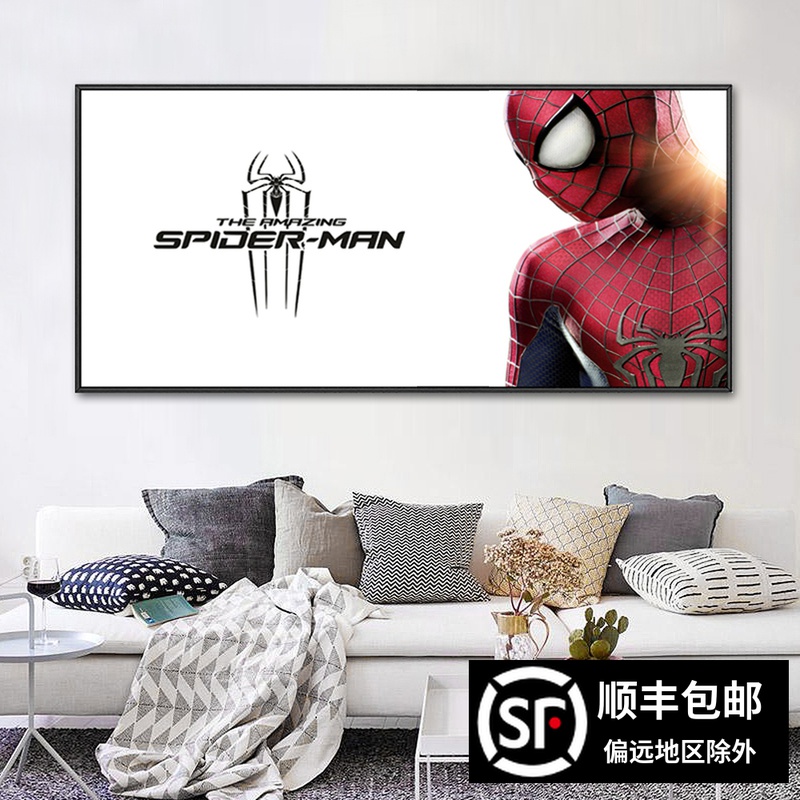 巨幅蜘蛛侠横版客厅装饰画电影海报儿童房卧室床头挂画影音室壁画热门设计联盟服务商