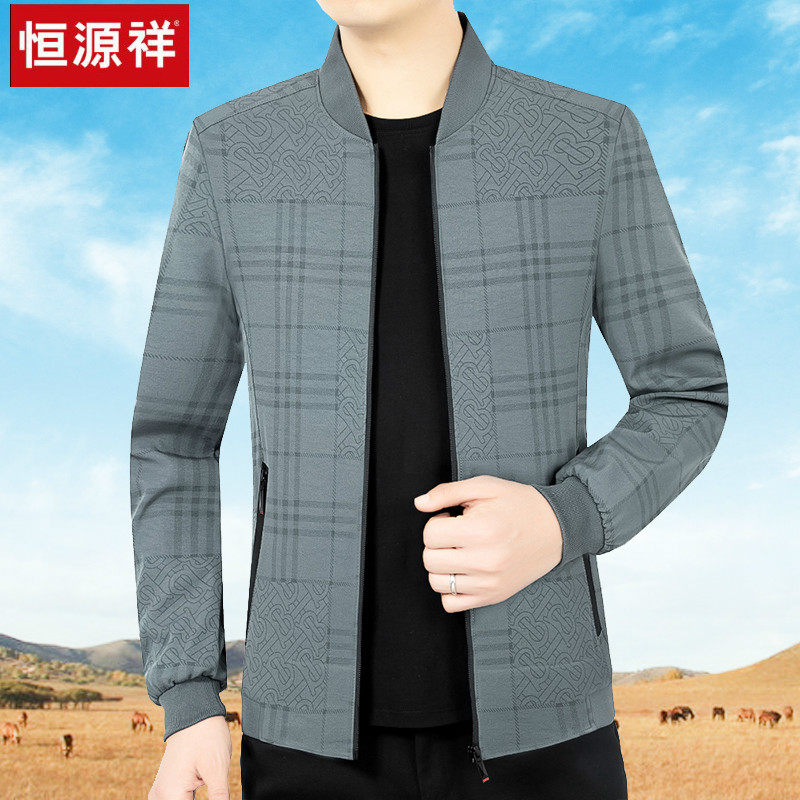 恒源祥夹克男春秋夏商务休闲青中年圆领格子上衣薄款爸爸装外套男热门设计联盟服务商