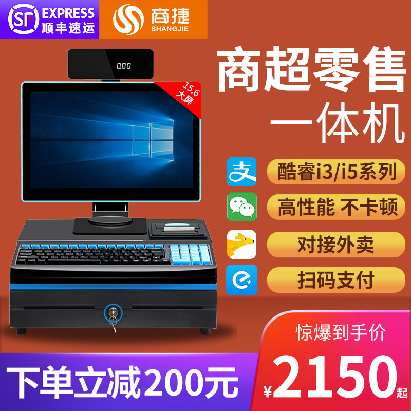商捷酷睿i3/i5/i7高配收银机一体机商场超市便利店餐饮扫码收款机热门设计联盟服务商