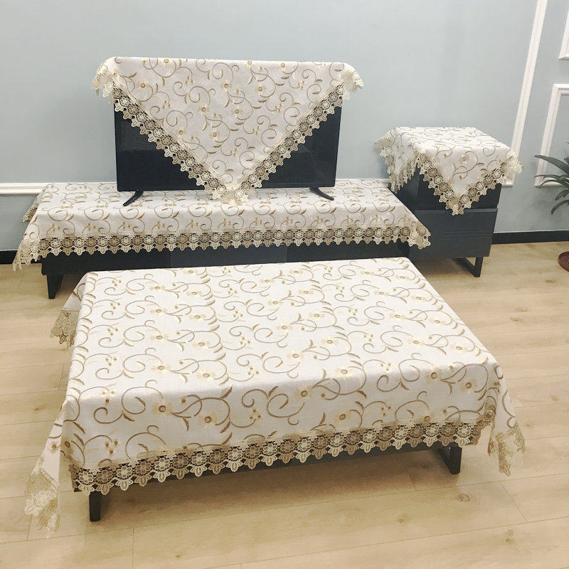 布艺桌布桌子圆形大气北欧茶楼展览静音蕾丝边写字桌餐桌隔热桌布热门设计联盟服务商
