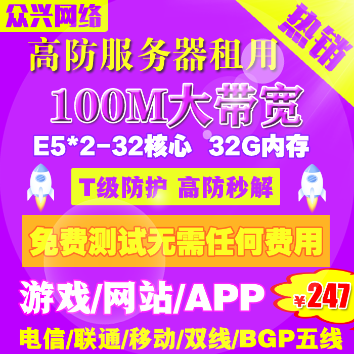 国内高防BGP多双线独立物理机服务器租用传奇微端网站页游戏秒解