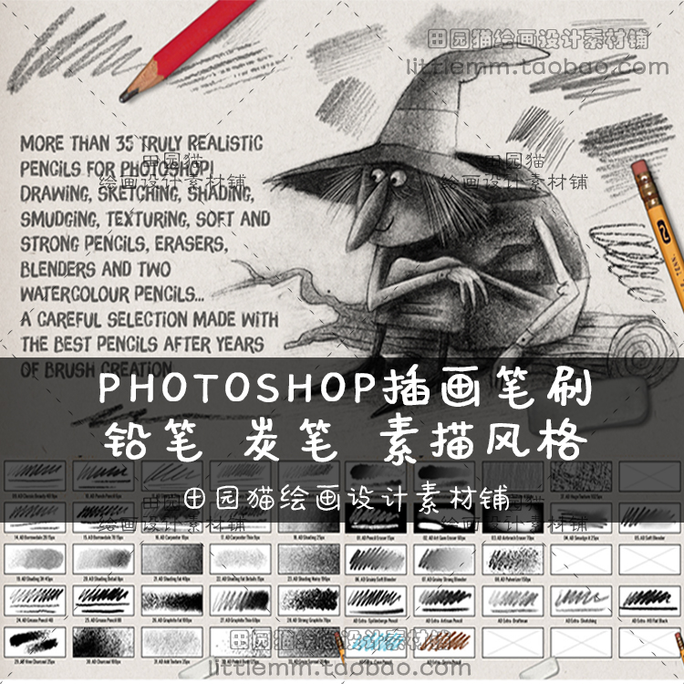 PS笔刷铅笔彩铅炭笔素描CG插画手绘数位板压感笔做旧设计素材推荐热门设计联盟服务商